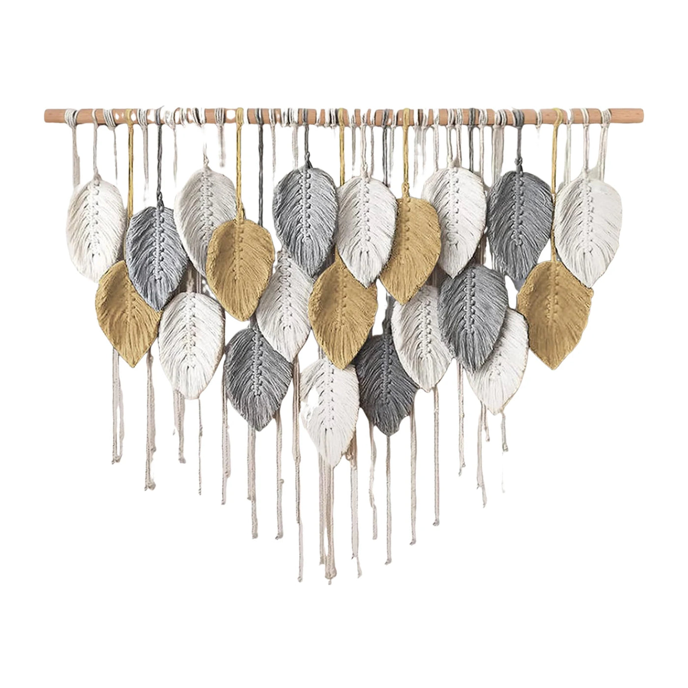 Transform your living space with the Large Macrame Wall Hanging from Cozy Corner. This boho-inspired woven tapestry adds a chic and modern touch to any room, making it perfect for living rooms, bedrooms, or study areas. Handcrafted with care, the intricate leaf and feather designs create a stylish focal point that complements modern bohemian interiors.